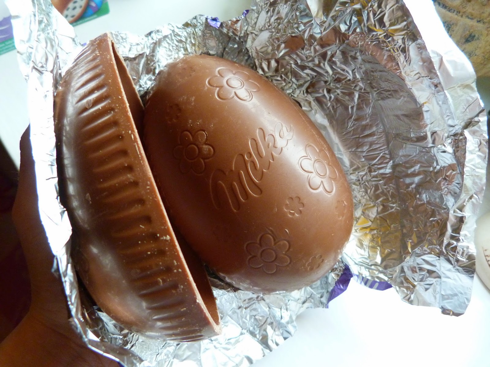 Jajo przeprane za królika z kokardą i mini jajeczka z kremem oreo. Milkę Oreo wielbię więc ślina tylko mi kapała. Byłam święcie przekonana, że to wielkie jajko a) ma w sobie jajeczka oreo b) jest wielkim jajkiem z kremem w środku. Ale zaraz...ktoś mnie zrobił w konia! Jajo jest puste, a garstka (taka jak dziecięca dłoń) jest na dnie opakowania - nuda! :(