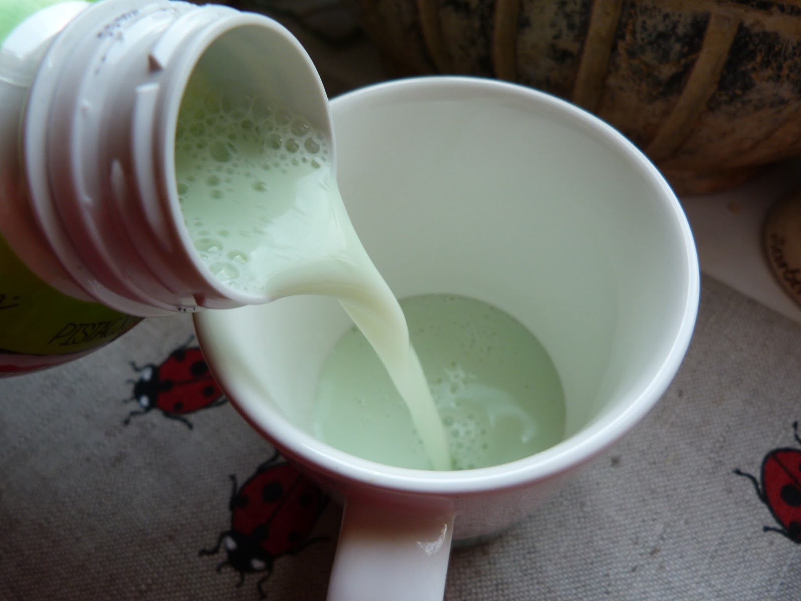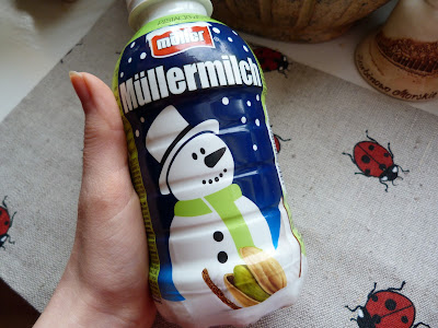 Wygląd i smak: Duża butelka, która mieści w sobie 400 gramów napoju. Jak wspomniałam na wstępie, jest teraz edycja świąteczna, a na ten smak przypadł słodki bałwanek ;) Po otworzeniu butelki można się nieźle przerazić, bo kolor mleka jest tak zielony, tak sztuczny, że człowiek boi się wypić! A nuż stanie się taki zielony na twarzy? :P Konsystencja jest rzadka i bardzo płynna, bo przypominam, że to mleko, a nie jogurt.