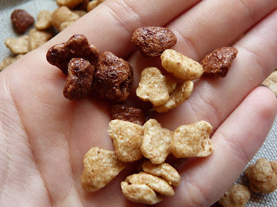 Cheerios (klik), co za tym idzie - szybko ciapają się w mleku. Nie lubię tego więc tu już mają minus.