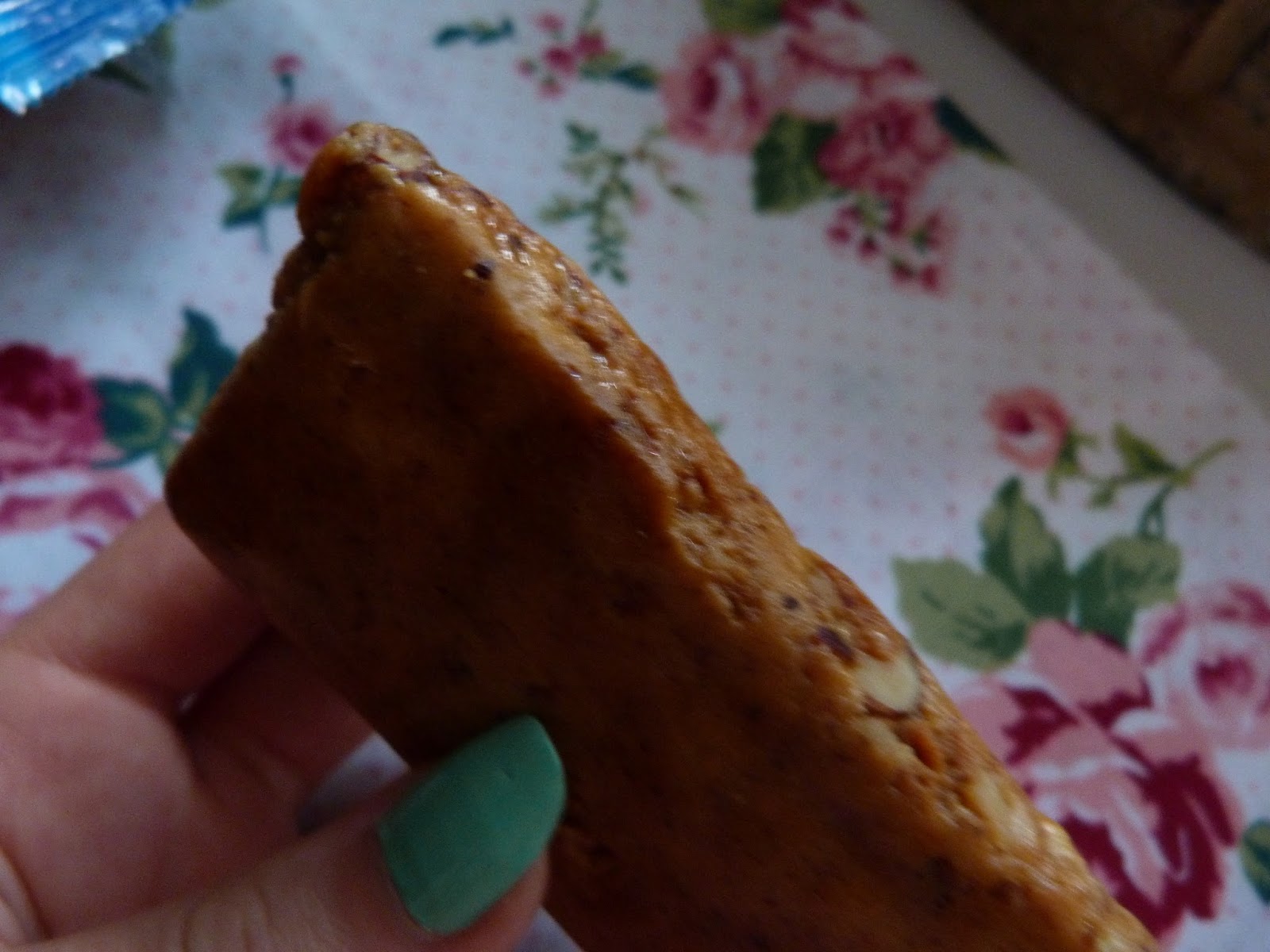 Wygląd i smak: Po opakowaniu tego batonika spodziewałam się nie wiadomo czego. Wyobrażałam sobie masę migdałów w zestawieniu z aromatyczną wanilią, chrupkami i ciekawą konsystencją proteinowych batoników. Opakowaniu wszystko to zapowiadało, a więc i ten smak trafił do mojego koszyka. Niestety już po samym rozpakowaniu się zawiodłam. Baton okazał się strasznie tłusty, pozbawiony dodatków (marny jeden migdał...) i nijaki. Sama nie wiedziałam jak się za niego zabrać, czy jeść na surowo czy podgrzewać. Moje lenistwo jednak wygrało i zjadłam go bez przypiekania w piekarniku bądź mikrofalówce. Zacznę od jego zapachu, który był totalnie nijaki. Miałam wrażenie, że baton po prostu pachnie jakimś słodzikiem i niczym więcej. Bałam się, że posmak stevi będzie tu nie do zniesienia, ale na szczęście były to tylko obawy. Batonik nie był wybitnie twardy, łatwo się go kroiło i żuło. W samu okazał się bardzo, ale to bardzo nudny i słodki. Ta słodycz była wyraźnie sztuczna, muląca i pozostawiała nieprzyjemny posmak na języku. Zdecydowanie nie jadło się go z przyjemnością, bo słodycz wszystko psuła. Sztuczny, nudny i tłusty, podejrzanie za tłusty. To chyba najgorszy QB jakiego jadłam i na pewno się już na niego nie skuszę. NUDA!