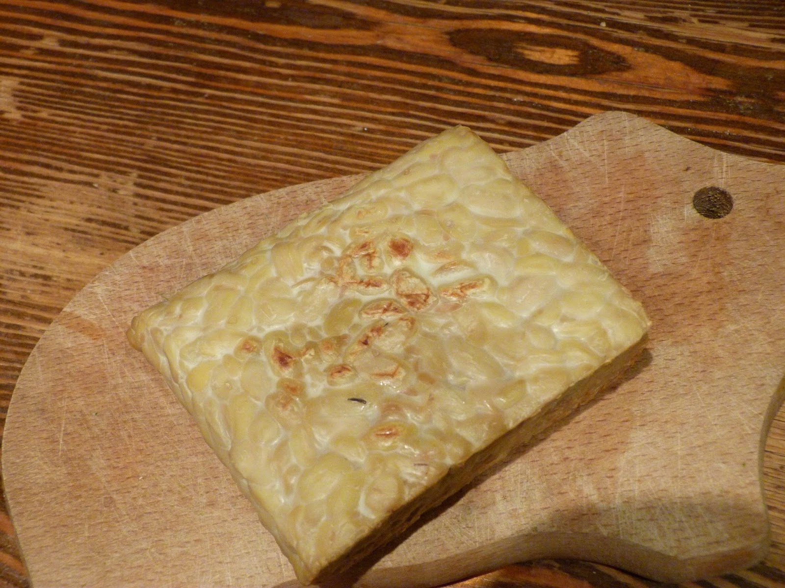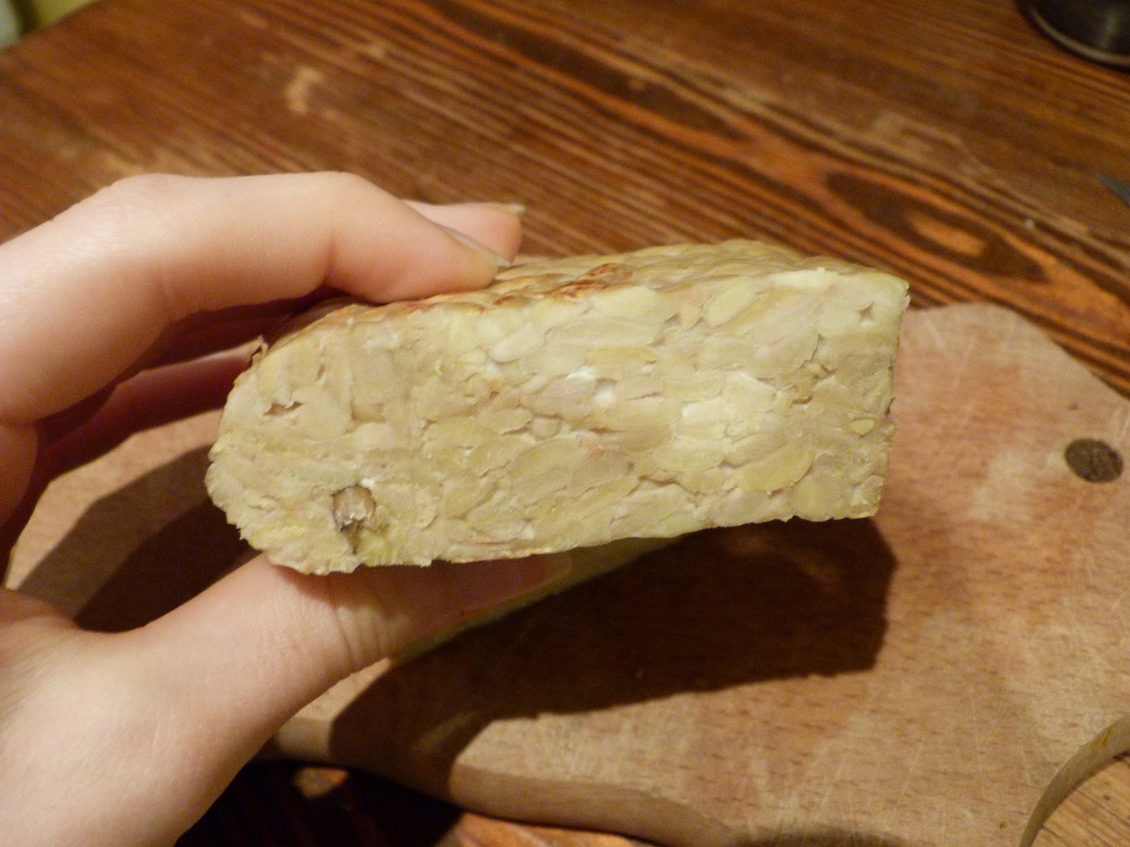 Wygląd: Dla mnie tempeh wygląda jak sprasowany w kostkę mózg. Śmieszna, duża kostka, która zawiera w sobie masę pozlepianych ziarenek soi. Z jednej strony lekko odpychający,a z drugiej powodujący podekscytowanie przed spróbowaniem. Na początku kompletnie nie wiedziałam jak się za niego zabrać!
