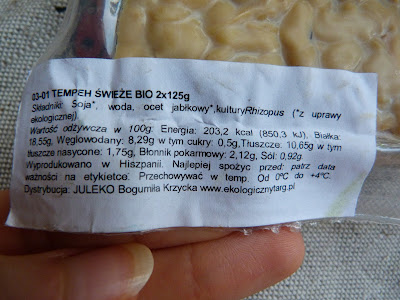 Od razu zaznaczę, że nie polecam próbować go na surowo! Ja niestety tak zrobiłam i ...fuuuj :P Smakuje jak ziarna soi z puszki z aromatem drożdży - coś okropnego! Jednak gdy wymoczyłam go w domowej marynacie (niedługo przepis!), a potem usmażyłam to...no normalnie się zakochałam, ta sama sytuacja co z tofu :)
