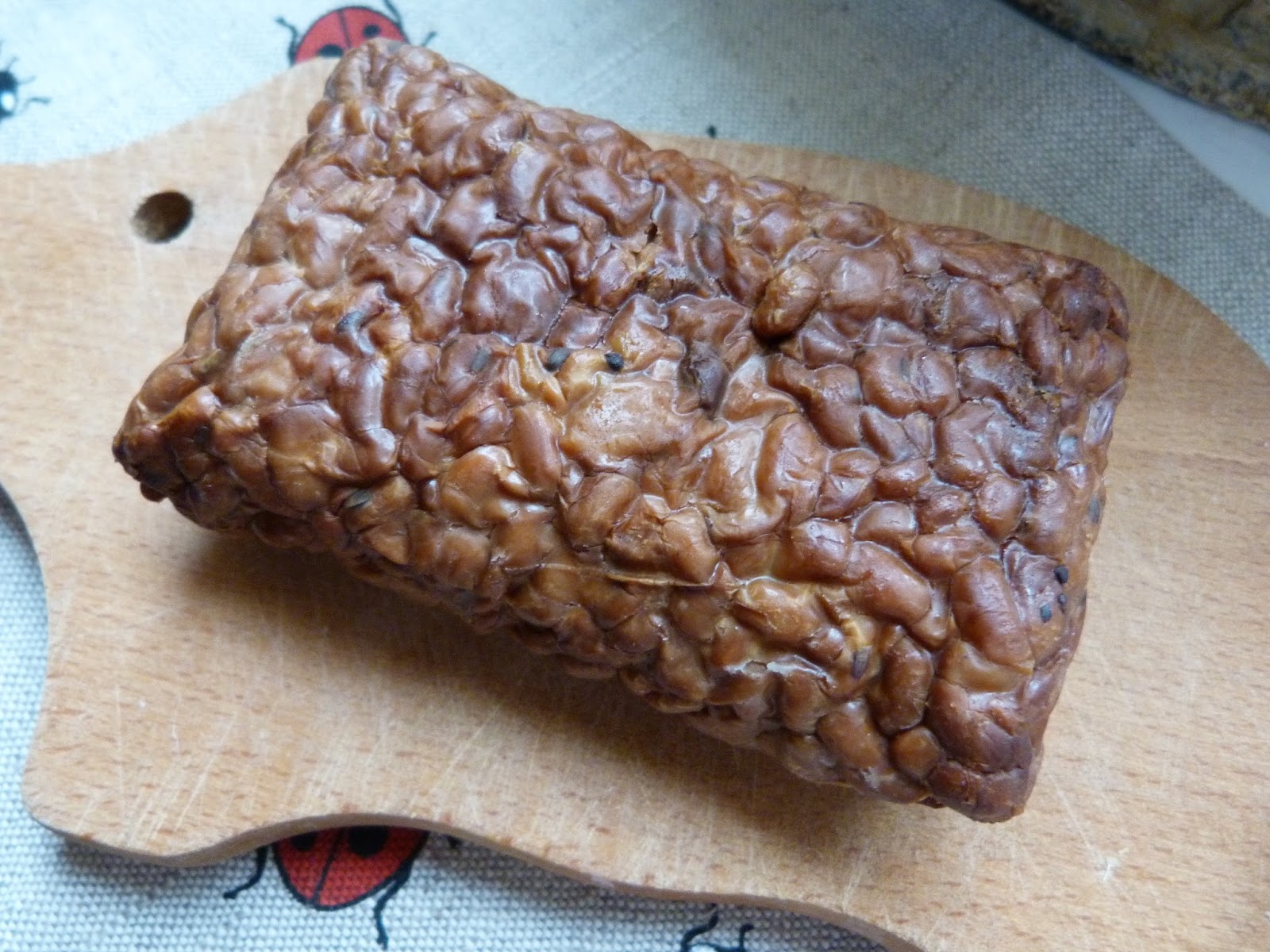 Wygląd: Po otworzeniu nie wygląda może zbyt apetycznie, bo...no nie oszukujmy się, wygląda jak psia kupa :P Kostka może wygląda niepozornie, ale jest strasznie ciężka, zbita i fajnie się kroi :) Tempeh to wytwór z fermentowanej soji, a więc to po prostu jest zlepek z jej ziaren. Tutaj dodatkowo jest on już z marynatą, a więc nie musimy robić swojej. Marynata ta nadaje fajnego koloru i zapachu! Aż ślina cieknie na samą myśl ;) A jak smakuje?