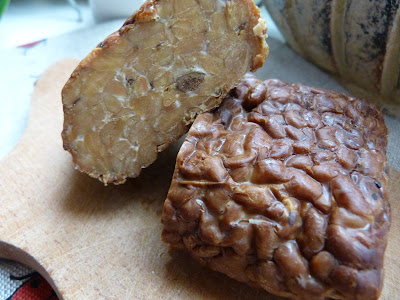 Wygląd: Po otworzeniu nie wygląda może zbyt apetycznie, bo...no nie oszukujmy się, wygląda jak psia kupa :P Kostka może wygląda niepozornie, ale jest strasznie ciężka, zbita i fajnie się kroi :) Tempeh to wytwór z fermentowanej soji, a więc to po prostu jest zlepek z jej ziaren. Tutaj dodatkowo jest on już z marynatą, a więc nie musimy robić swojej. Marynata ta nadaje fajnego koloru i zapachu! Aż ślina cieknie na samą myśl ;) A jak smakuje?