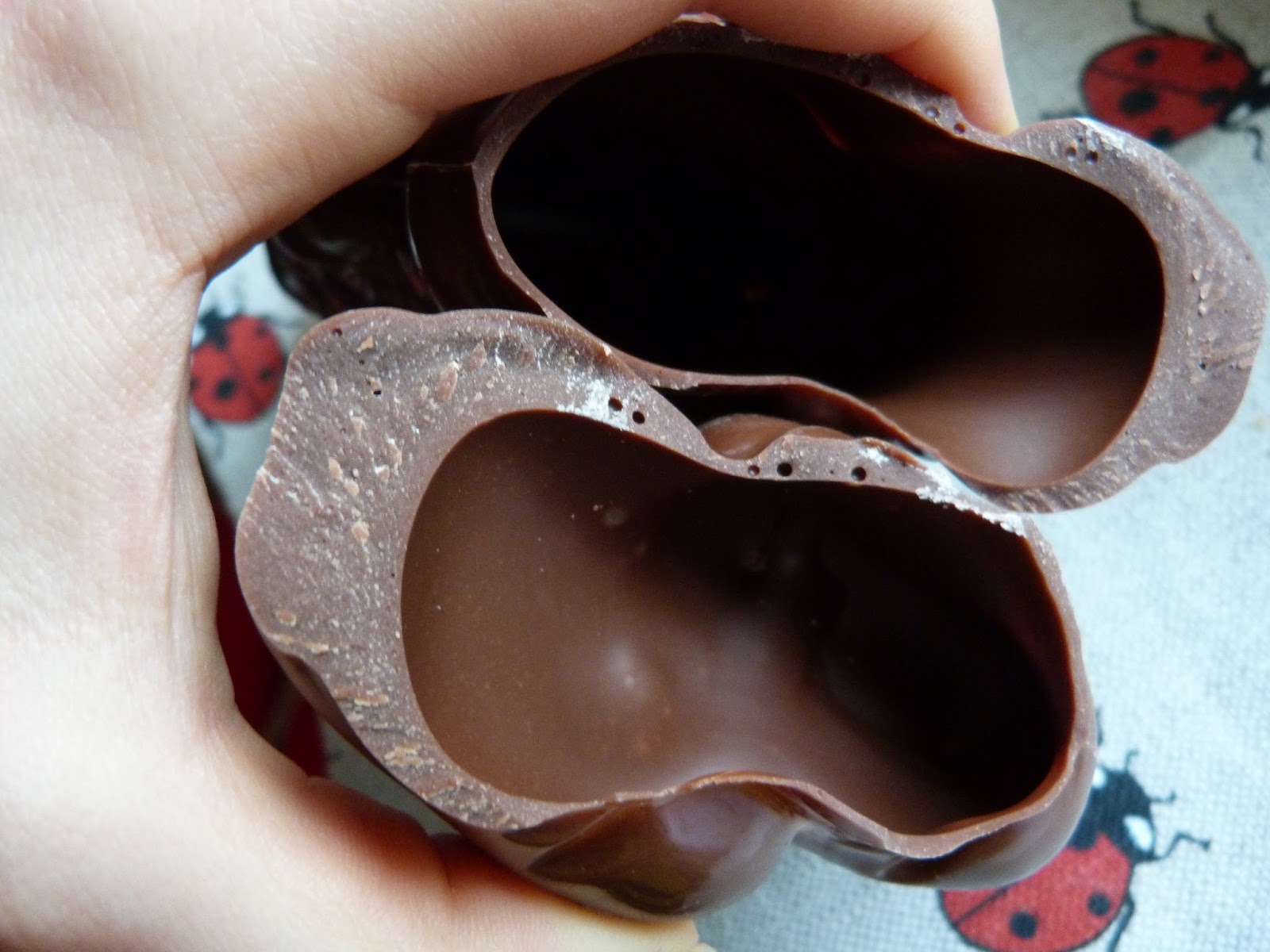 Wygląd i smak: Jak widać nie jest to zwyczajny czekoladowy Mikołaj i nie mam tu na myśli jego wegański skład. Co go wyróżnia? Jego zapakowanie! Jest umieszczony w pudełeczku, a w środku nie jest ''ubrany'' w sreberko, a jedynie folię zabezpieczającą przed otoczeniem. Jest bardzo estetycznie zrobiony, z ładnego odlewu i na prawdę przypomina Mikołaja z długą brodą :D Po jego rozpakowaniu strasznie przykro było mi go rozbić, ale jakoś trzeba było się dobrać do czekolady ;) Zacznę do jego zapachu, który przypominał Milkę albo Goplanę. Taką słodką, silnie mleczną czekoladę, a przecież tutaj nie ma ani grama mleka krowiego - magia! Zapach spodobał się nie tylko mnie, ale też mojej siostrze, która nie mogła doczekać się degustacji. Czekolada okazała się lekko krucha, ładnie się łamała i nie topiła od razu w łapkach. Jak widać na zdjęciu poniżej, ni była zbyt gruba, ale też nie porażała swoją cienkością. Smak? Złudnie przypominający zwykłego czekoladowego Mikołaja! I to CZEKOLADOWEGO, a nie CZEKOLADOPODOBNEGO ♥ Jak bym miała go porównać do jakiegoś konkretnego czekoladowego Mikołaja to byłby to Mikołaj z Milki albo Merci - smaczne, słodkie i baaaardzo mleczne! Polecam, ja na pewno skuszę się na niego ponownie w okresie świąt :)