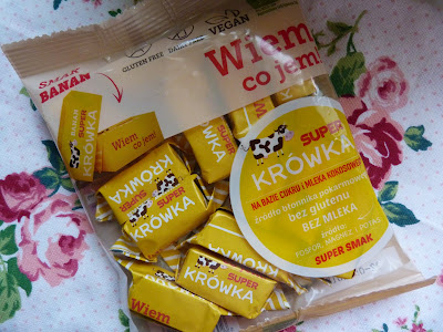 Wygląd i smak: Zacznę oczywiście od samego opakowania, które jest prześliczne, urocze i przyciągające uwagę. Pisałam już to wcześniej, ale cóż...opakowanie się nie zmieniło, a jedynie kolorek, który jak na banana przystało jest żółty :) Podchodziłam do nich trochę z rezerwą, bo wiem z doświadczenia, że słodycze o bananowym aromacie bywają sztuczne i niezjadliwe, ale w tym przypadku się nie zawiodłam :) W środku krówki ani trochę się stopiły i dało się je spokojnie odrywać od papierka. Zaznaczę już na samym początku, że są to krówki CIĄGUTKI, a więc dla osób, które są wierne tym kruchym - nie polecam ;) Zapach był bardzo delikatny, praktycznie nie czułam banana, ale to nawet dobrze, bo oznaczało to naturalny jego wkład, a nie sztuczne badziewie. Miały bardzo słodki aromat, zdecydowanie słodszy niż poprzedniczki. Nie mogłam się długo powstrzymywać, a więc szybko zabrałam się za test smaku! Wrażenia? Ponownie miłość od pierwszego gryza, a co! :) Krówki okazały się IDEALNE w smaku i takie, jakie uwielbiam najbardziej. Słodziutkie, ciągnące i zaklejające :) Banana było wyraźnie czuć ale nie sztucznie, a właśnie bardzo subtelnie. Nadawał fajnej słodyczy i ciekawie komponował się z smakiem toffi. Toffi też wyraźnie czułam, ale nutka banana była! Są to chyba najsłodsze jakie jadłam, ale i tak OBŁĘDNE! Polecam, bo to unikatowy smak, który warto sprawdzić na własnych upodobaniach smakowych ;)