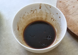 Ocet mieszamy z sokiem z cytryny i cukrem. Ciągle mieszając dodajemy stopniowo olej sezamowy. Bezpośrednio przed podaniem, sałatkę polewamy sosem.