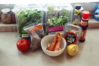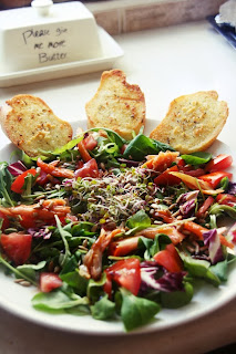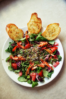 Hej! Ostrzegam, że zamęczę Was rybami, bo ostatnimi czasy mamy na nie wielką ochotę. Dzisiaj sałatka. Do szkoły, pracy, na śniadanie albo obiad. Jadłam ostatnio podobną w Cukrze w Sieradzu i teraz mogłabym ją jeść codziennie... no może co drugi dzień. Dla tych którzy znają ten rarytas od razu powiem, że to moja luźna interpretacja. No dobra, zaczynajmy.