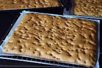 Przełożone blaty przykrywamy papierem do pieczenia i zawijamy w lnianą lub bawełnianą ściereczkę. Układamy na nich blachę albo dużą deskę do krojenia i równomiernie obciążamy. (Można posłużyć się np. torebkami z mąką czy cukrem.) Taką konstrukcję odstawiamy na 12 do 24 godz. Nie trzeba chować jej do lodówki. Po tym czasie kroimy duży piernik na tyle części, ile chcemy mieć gotowych ciast. Ja przekrawam go wzdłuż na 4 części. (Brzegi można wyrównać, by gotowe pierniki ładniej wyglądały.) Teraz znów każdy z pierników owijamy w papier i ściereczkę, a następnie wszystkie chowamy do szczelnego pojemnika lub torebki foliowej. Odstawiamy w chłodne miejsce lub na dolną półkę lodówki na minimum 2-3 dni.