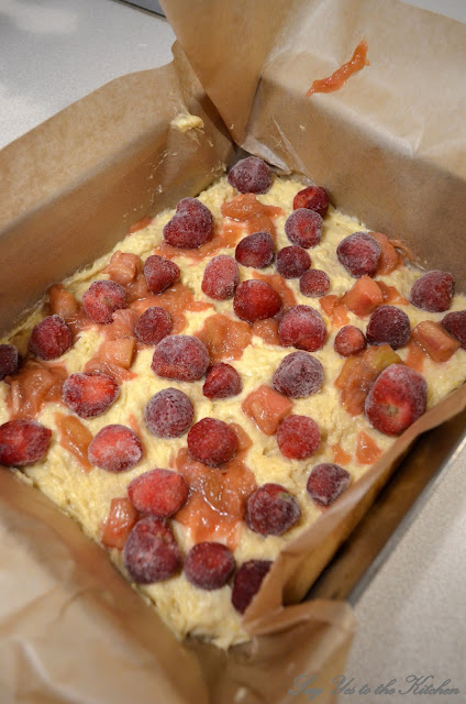 Przepis na klasyczne ciasto z rabarbarem i truskawkami. Zmniejszyłam ilość składników o połowę, ponieważ w moim domu nie przepada się za samym ciastem drożdżowym. Wolimy większą ilość owoców :)