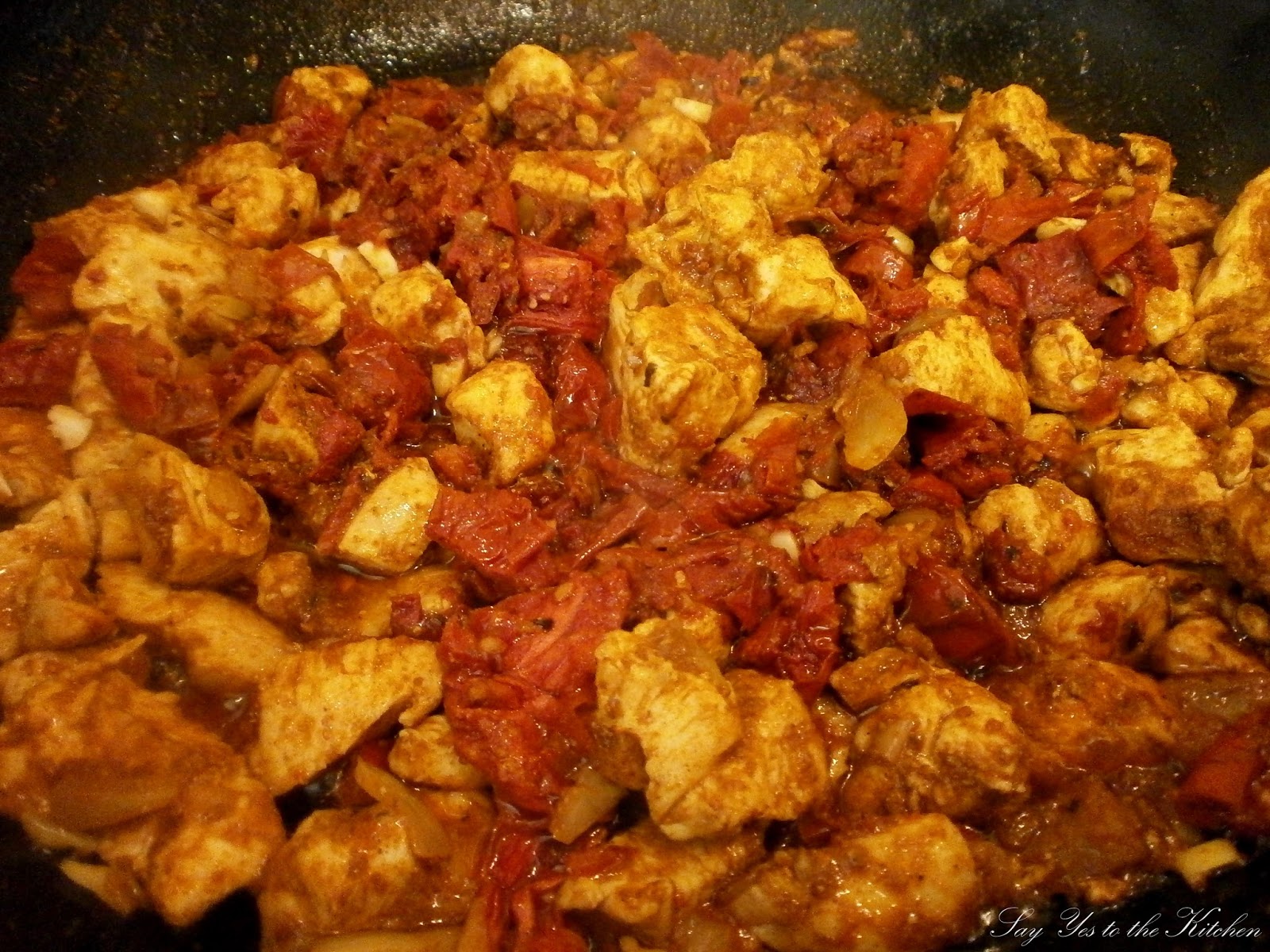 Piersi myjemy, następnie kroimy w kostkę według własnego upodobania. Kiedy nasz kurczak jest już pokrojony zabieramy się za cebule i czosnek. Cebule obieramy, kroimy w kostkę a czosnek przeciskamy przez praskę. Zostały nam nasze suszone pomidory, ja osobiście polecam pokrojenie ich w kostkę aczkolwiek można je także wrzucić w całości. Na patelni rozgrzewamy oliwę (możemy użyć oliwy z suszonych pomidorów), następnie wrzucamy cebule i czosnek. Kiedy cebula się zeszkli wrzucamy naszą pokrojoną pierś. Doprawiamy według własnego uznania solą, pieprzem, słodką papryką oraz oregano. Po usmażeniu kurczaka, dodajemy do niego suszone pomidory oraz śmietankę. Pozostaje nam już tylko przykryć patelnie pokrywką i dusić nasze danie przez około 10 minut. Podawać z ryżem lub makaronem.