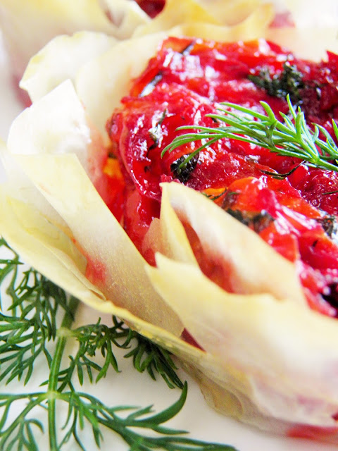 Babeczki z ciasta filo z warzywnym farszem