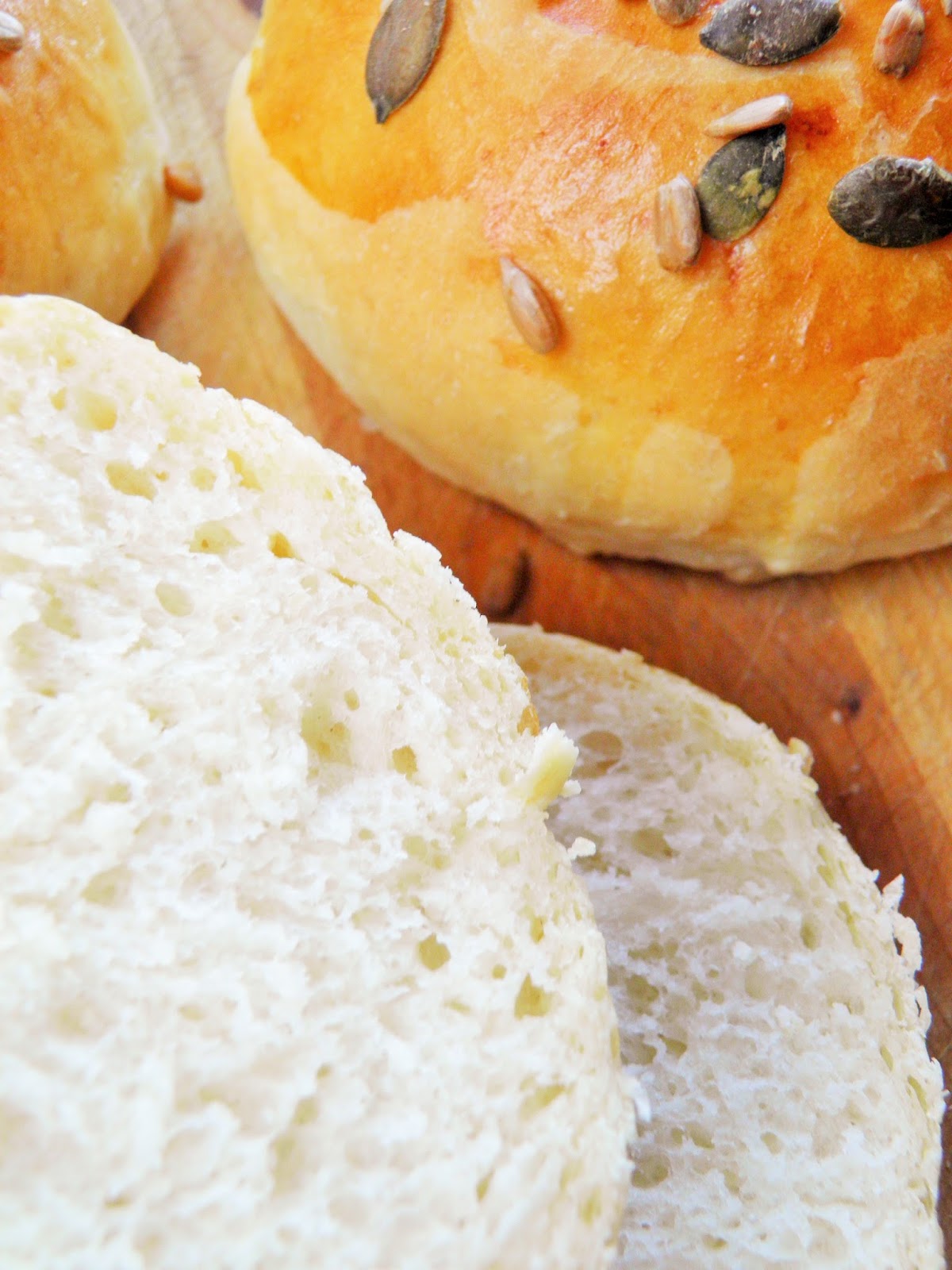 Malutkie, miękkie w środku i chrupiące na zewnątrz bułeczki śniadaniowe o drobnych regularnych porach w puszystym miąższu. Doskonałe zarówno do wędliny i sera, jak i dżemu czy kremu czekoladowego. Udają się nawet pomimo burzy szalejącej za oknem. Smaku...