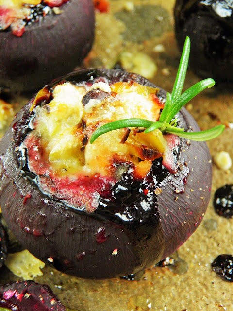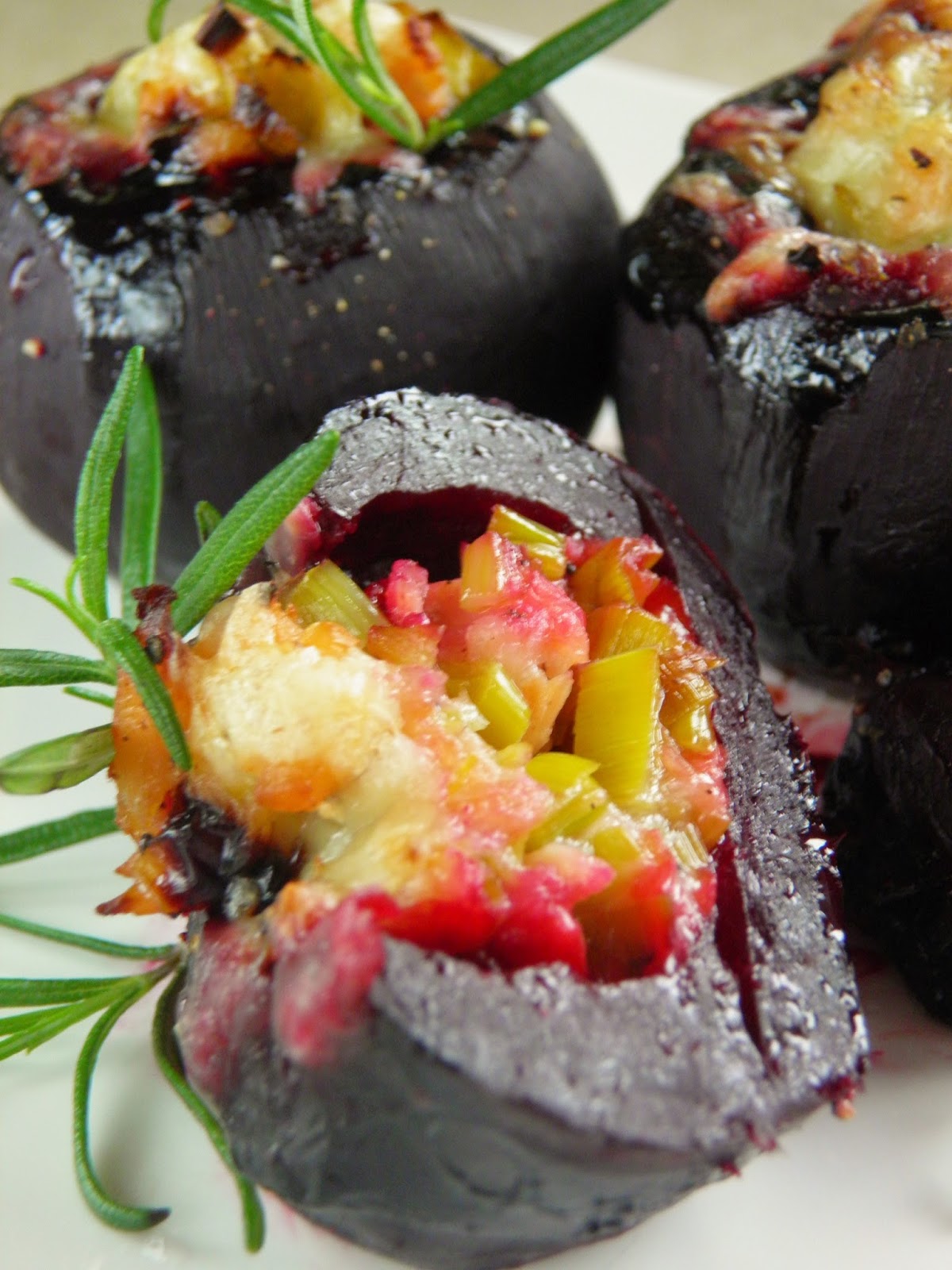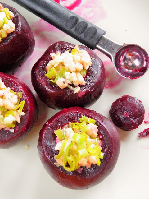 Pieczone buraki nabierają słodyczy, są bardzo delikatne. Wydrążyłam je i napełniłam farszem z łososia i duszonego pora, do tego wszystkiego mozzarella... Wyobraźcie sobie jak to smakuje :) Albo po prostu je zróbcie, nie pożałujecie na pewno!