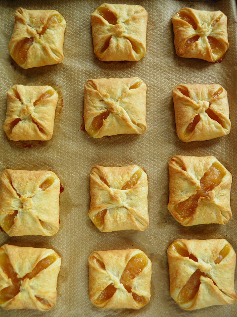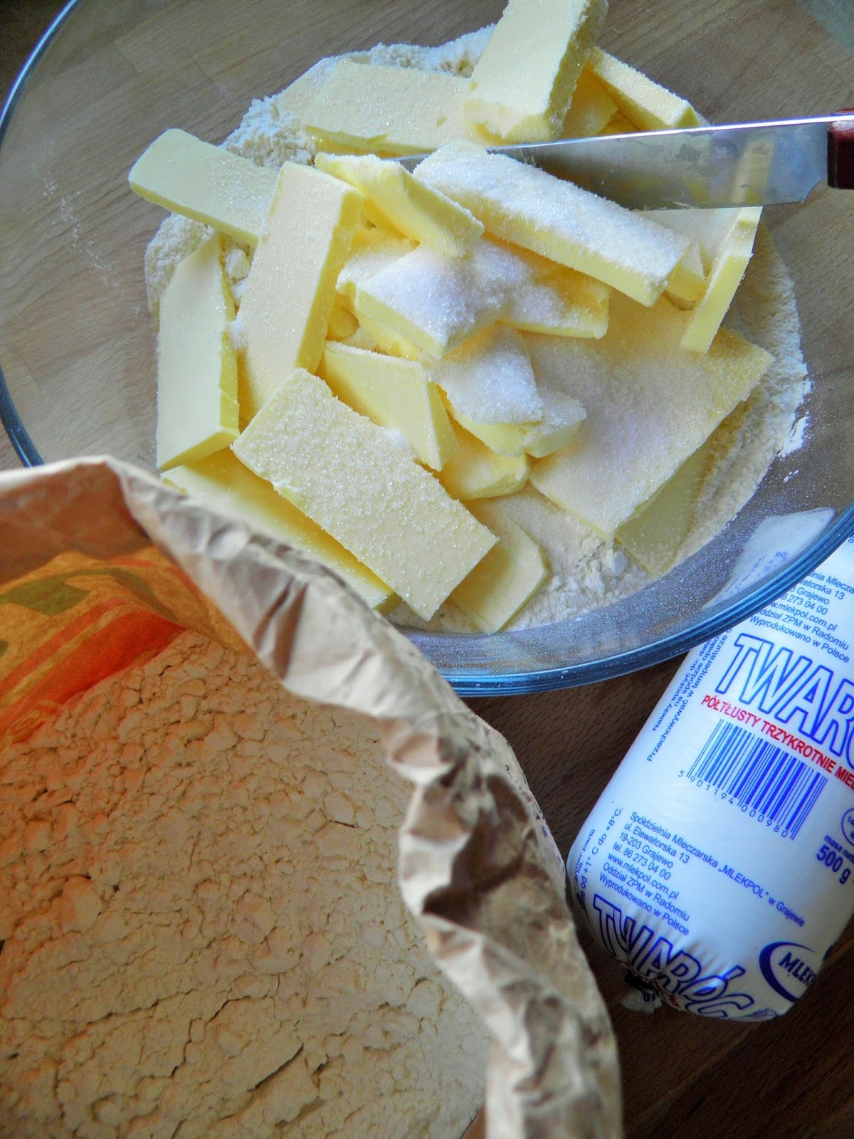 Zapomniałam jakoś o tych wspaniałych ciasteczkach - wczoraj była dobra okazja do ich upieczenia, bo wyjeżdżaliśmy i chciałam zabrać jakieś słodkości. Bardzo lubię ten rodzaj ciasta, przypomina lekko ciasto francuskie, bo rozwarstwia się przy pieczeniu. To ciasto serowe, z dużą ilością masła i twarogu.
