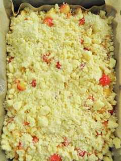 Ciasto drożdżowe z brzoskwiniami, czereśniami i kruszonką (na maślance i oleju)