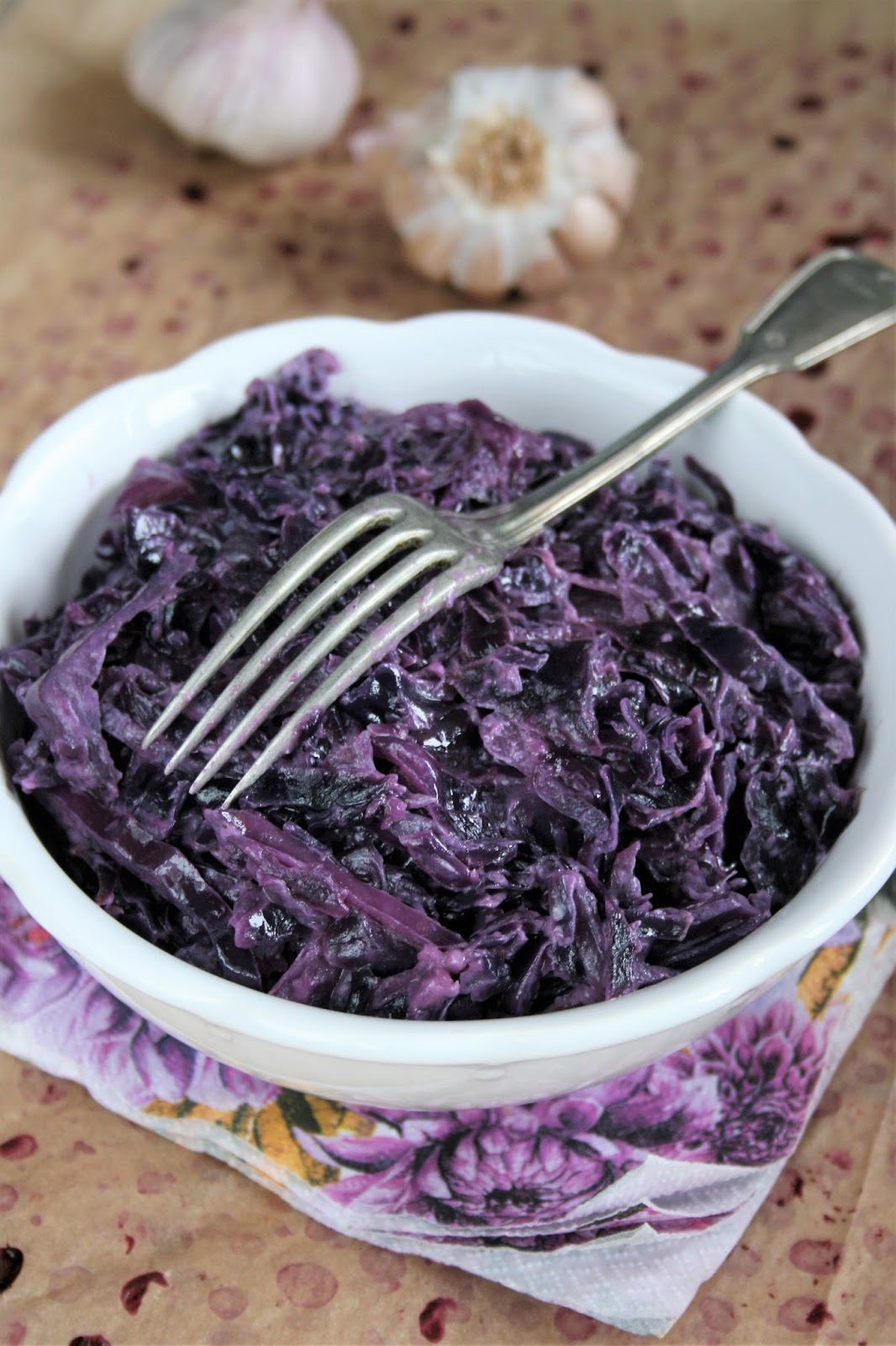 Czerwona kapusta kojarzy mi się z jesienią. Dziś jest chłodno, wietrznie i jesiennie, więc to wprost idealny czas na pyszną, zasmażaną z kwaśną śmietaną i czosnkiem kapustę.