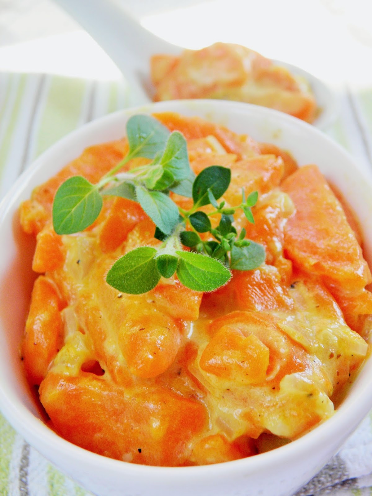 Potrawka z marchewki, którą Wam dziś chcę pokazać, pasuje idealnie do duszonego lub pieczonego kurczaka podanego z ryżem. Jest kremowa, słodkawa, choć smak jest trochę podkręcony curry i czosnkiem.
