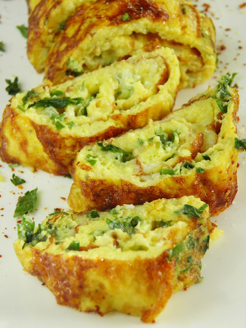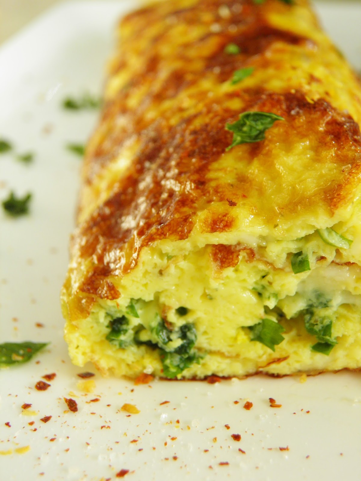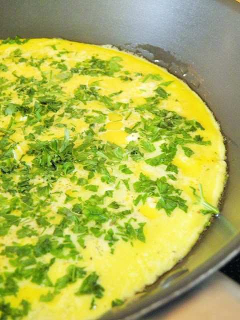 Propozycja na pyszne i zdrowe śniadanie, które doda nam energii na cały poranek. Delikatny omlet z mnóstwem dobroci w środku - pomidorami, serem feta, czosnkiem, chilli i świeżymi ziołami, a do tego trochę zieleninki z pyszną oliwa truflową. Mniaam! :)...