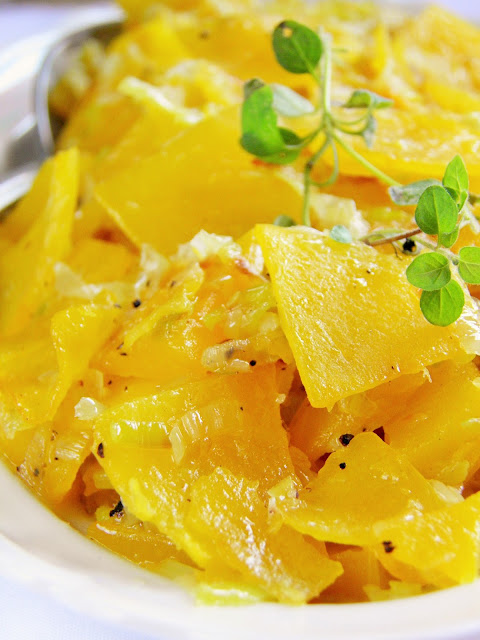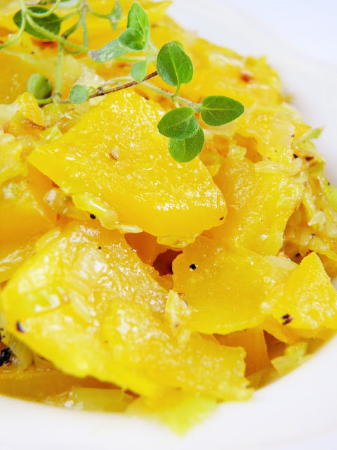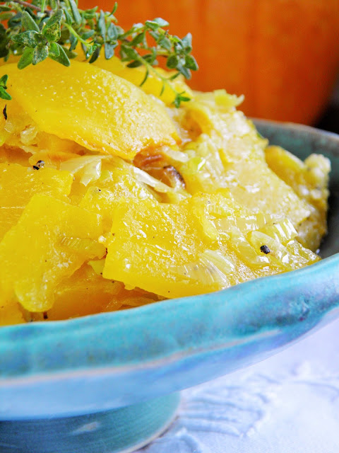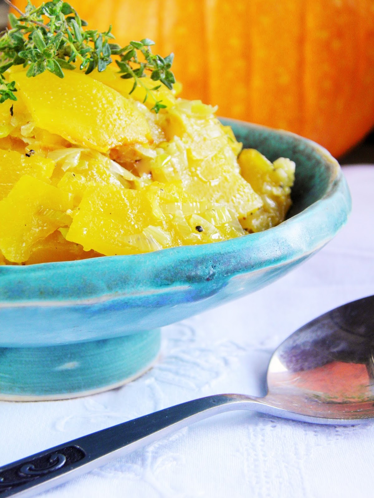 Zacznę od wersji, którą lubię najbardziej: dynia podsmażona, duszona z masłem. Dziś z dodatkiem pora, leciuchno muśnięta słodyczą ciemnego cukru. Aksamitna, delikatna i pyszna. Idealna jako dodatek np. do potrawki z kurczaka.