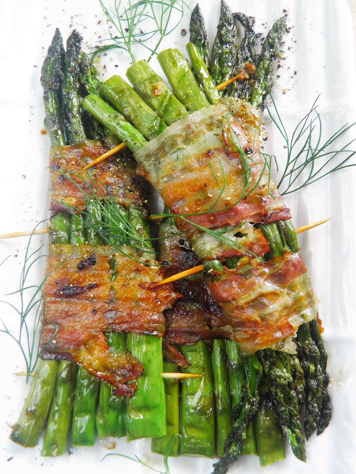 Kończy się nieuchronnie sezon na szparagi. U nas uroczyste zamkniecie nastąpiło dziś - przygotowałam je na patelni grillowej, z marynatą z czosnku i sosu sojowego, zawinięte w apetycznie rumiany boczek. Były absolutnie cudowne....