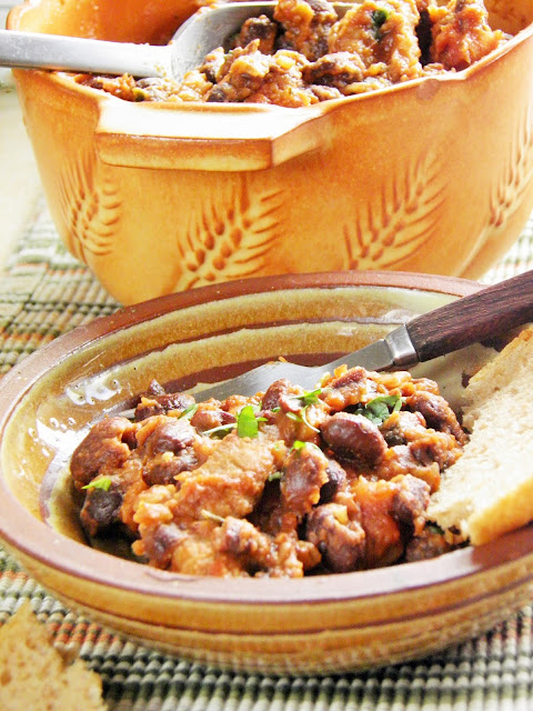 Gulasz wieprzowy z pomidorami i czarną fasolą