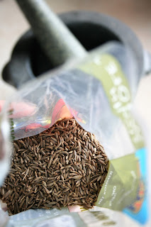 Mięso dzielę na dość duże kawałki, oprószam je curry, solą, czarnym mielonym pieprzem i słodką papryką. Nacieram je przyprawami, po czym oprószam mąką. Tak przygotowane przekładam na patelnię z rozgrzanym olejem i podsmażam do zrumienienia z jednej strony. Przekładam kawałki kurczaka na drugą stronę, i jednocześnie na patelnię dokładam pokrojoną w grube piórka cebulę, oraz ziarenka zielonego pieprzu. Smażę do zrumienienia cebuli. W międzyczasie w garnku z grubym dnem zagotowuję wodę z zielem angielskim, tymiankiem, liśćmi laurowymi i marchewką w kawałkach. Do wywaru przekładam podsmażonego kurczaka z cebulą i pieprzem, pozostawiając na patelni większość oleju (można go zużyć do innego dania). Wstępnie doprawiam sos solą i duszę wszystko pod pokrywką ok. 30 minut. Wyjmuję gałązkę tymianku, dodaję kmin, cynamon i posiekany czosnek, doprawiam ostatecznie solą. Odlewam kilka łyżek sosu, lekko studzę, mieszam go z mąką ziemniaczaną. Otrzymaną zawiesinę przelewam do garnka, mieszam i jeszcze chwilę podgrzewam. Podaję z ryżem ugotowanym na sypko.