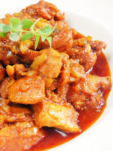 Bardzo smaczny gulasz, pikantny, z rodzaju takich jakie lubię: soczyste mięso w gęstym, pełnym smaku sosie. Ten smak to w dużej mierze sprawa papryki i sosu sojowego. Mięso z udek kurczaka jest soczyste, dlatego wolę je np. od filetów z piersi.