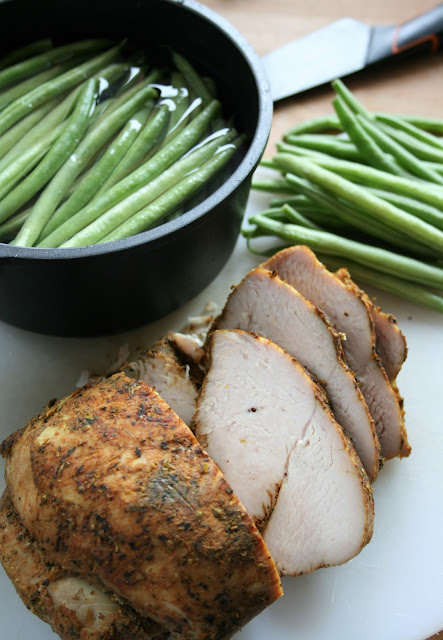 Z pełnym przekonaniem mogę polecić Wam dzisiejszą propozycję: fileta z indyka z pysznym sosem, i zieloną fasolką szparagową, którą po prostu ugotowałam w lekko osolonej wodzie. Indyka wczoraj upiekłam, więc część pozostała jako wędlina; resztę zagospodarowałam do dzisiejszego obiadu.