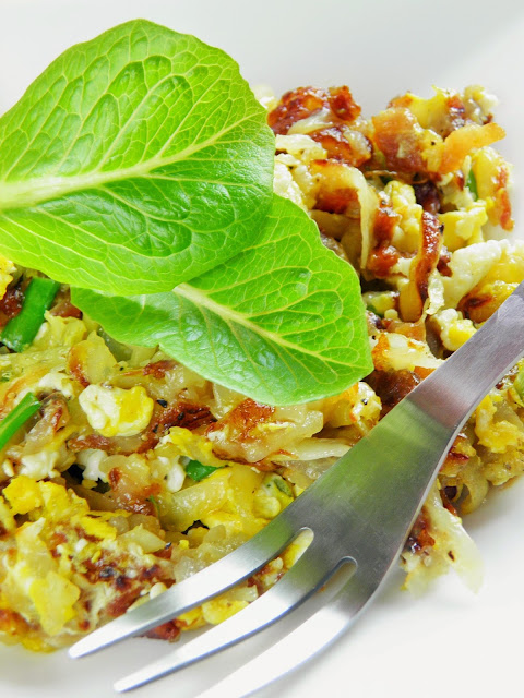 Można powiedzieć, że to uproszczona (i przyspieszona) wersja frittaty z ziemniakami. Lub - ta nazwa pierwsza przyszła mi na myśl - jajecznica z ziemniakami :) W każdym razie to bardzo smaczny i pożywny posiłek, który z powodzeniem może być nawet daniem obiadowym. Spróbujcie raz, myślę że się Wam spodoba !