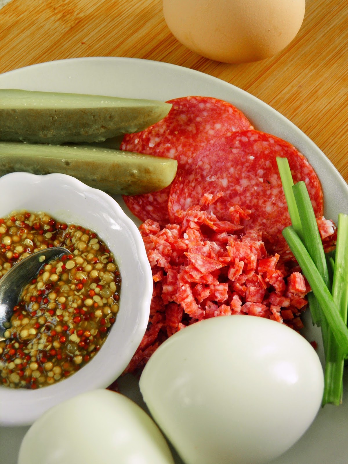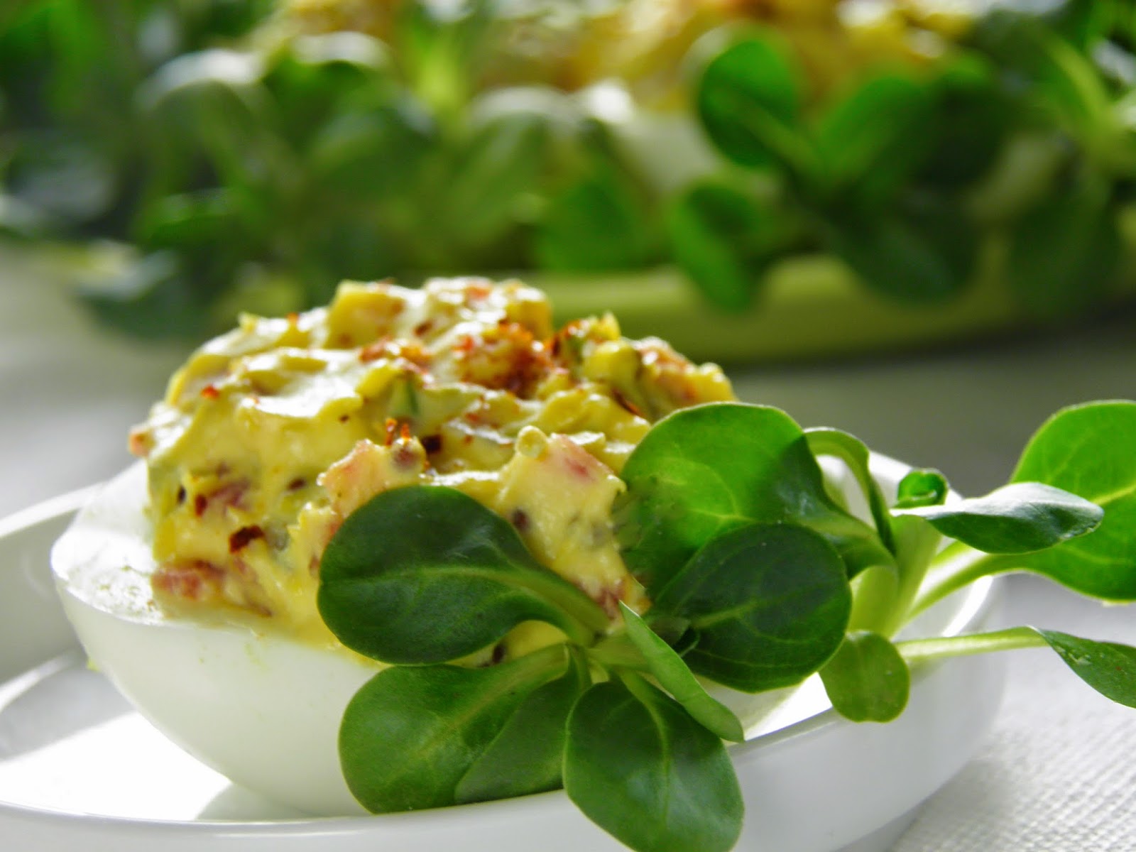 Jajka z pikantnym farszem (z salami i musztardą francuską)