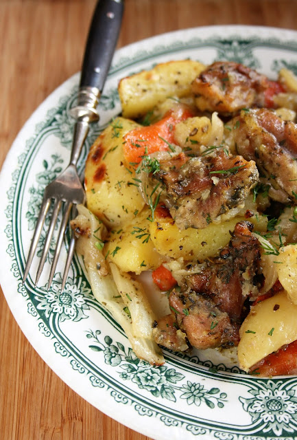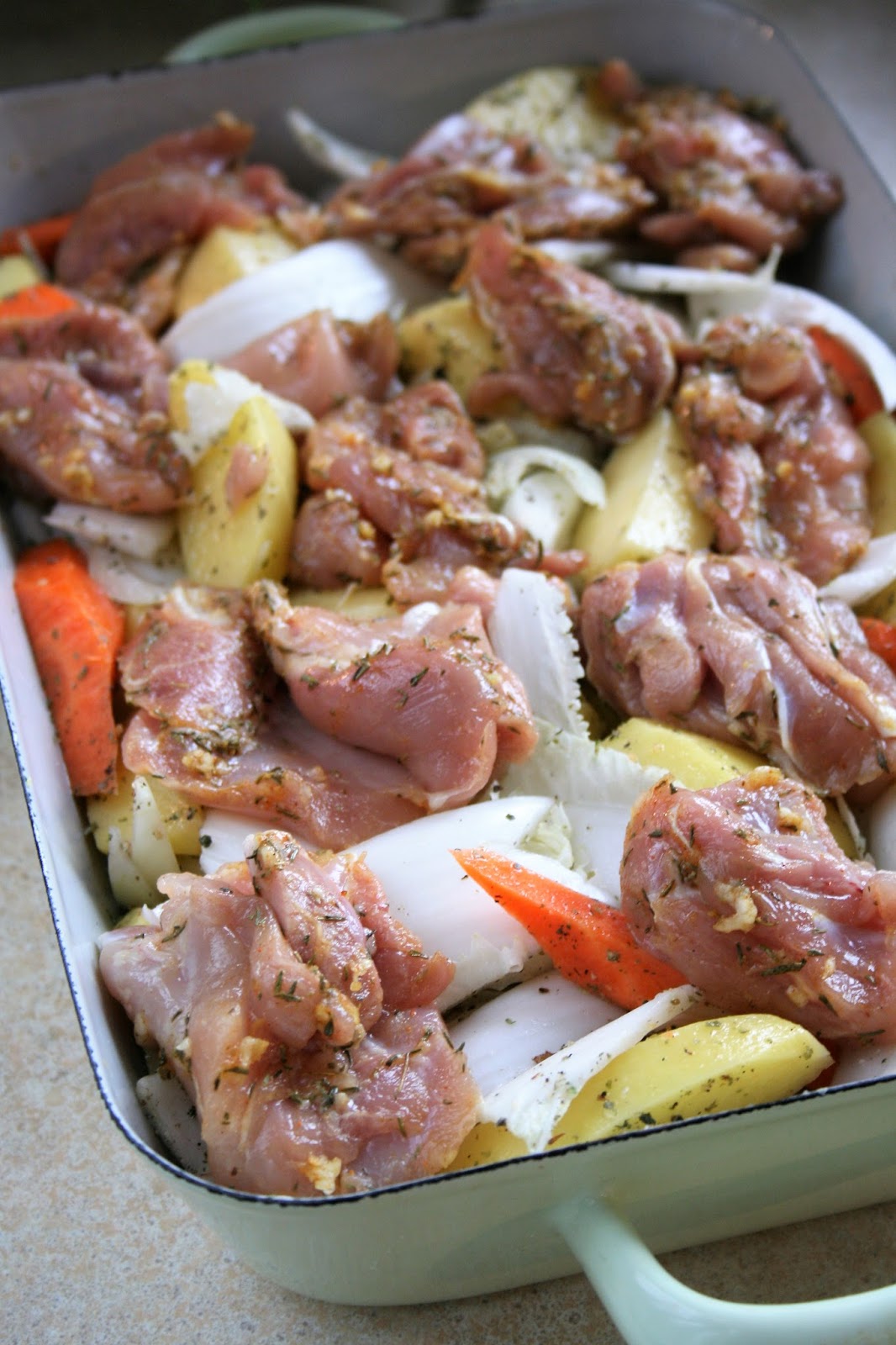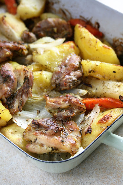 Ostatnio bardzo cenię każdą wolną chwilę i dlatego staram się ułatwiać sobie maksymalnie życie, również przy gotowaniu. Dziś na obiad zrobiłam danie z warzyw i soczystego mięsa z udek kurczaka, z niewielką ilością tłuszczu, z piekarnika - łatwe i pyszne. Może komuś zapracowanemu przyda się mój pomysł ?