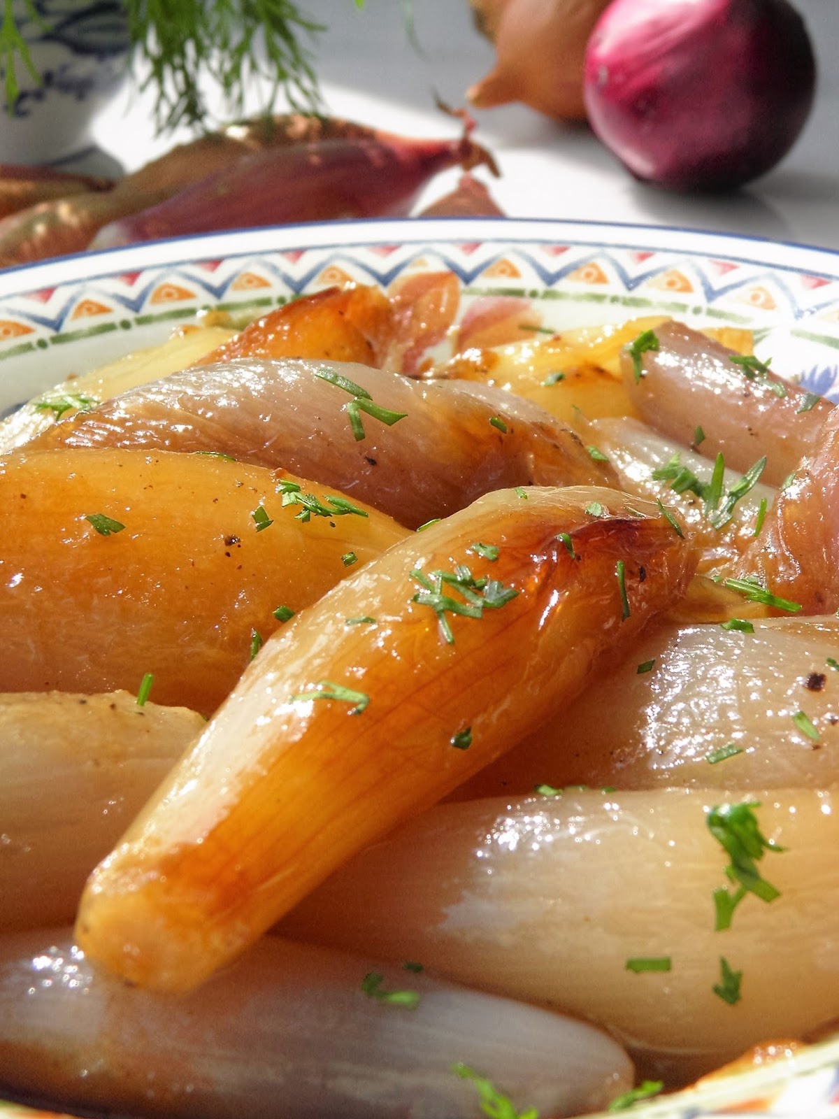 Takie szalotki wzbogacą każdy obiad. Słodko kwaśne, efektownie się prezentują, są obłędne. U mnie tym razem z rozmarynem, ale równie pyszne są w towarzystwie tymianku. Nie wahajcie się użyć tego przepisu. Jedna ważna uwaga, nie obcinajcie mocno końcówe...