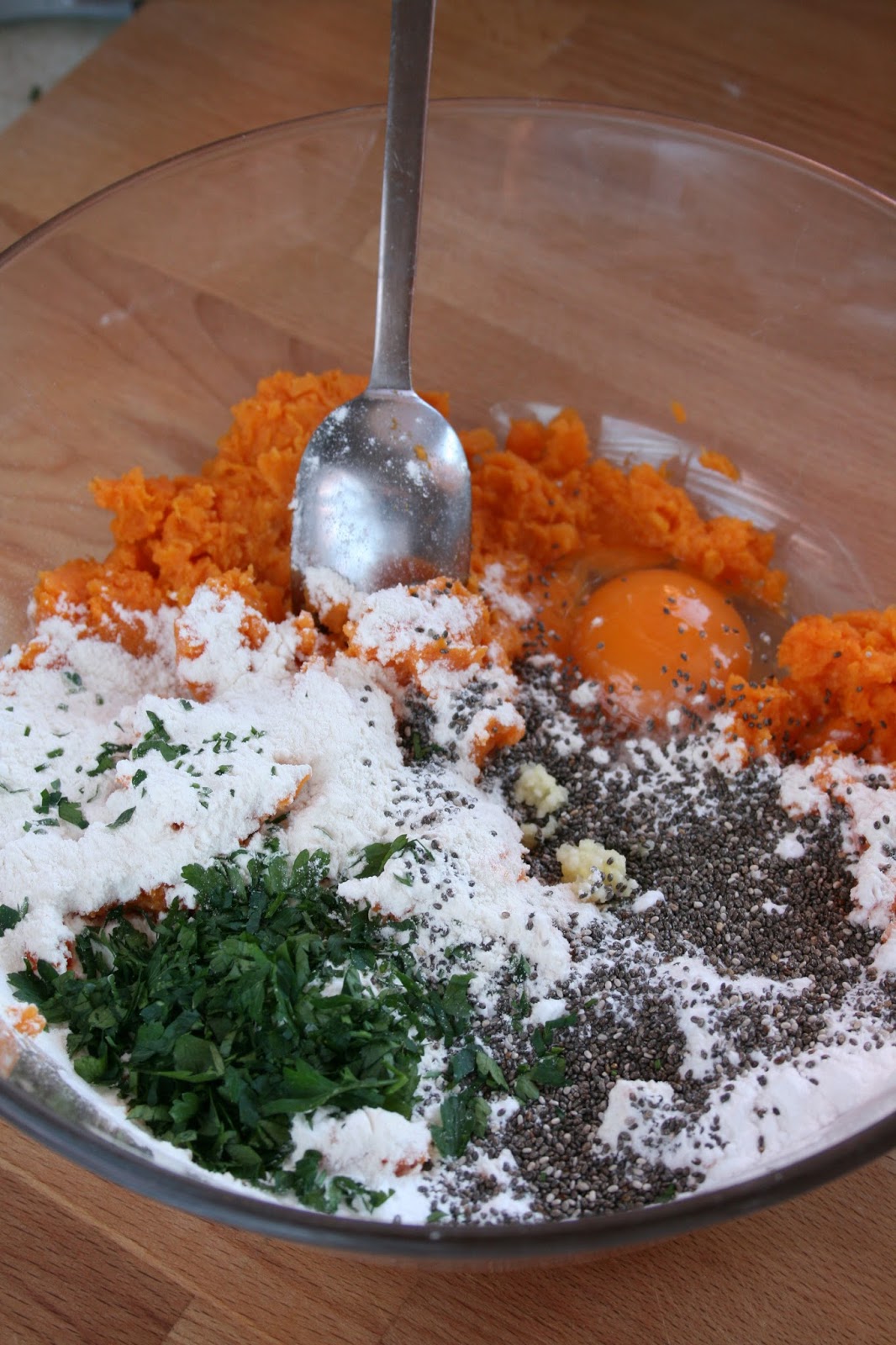Ze słodkich ziemniaków przygotowałam bardzo smaczne, delikatne kluseczki gotowane na parze, z dodatkiem czosnku, natki pietruszki, curry i nasion chia. Z tego samego ciasta można również usmażyć placki.Składniki:0,5 kg pokrojonych na kawałki batatów (w...