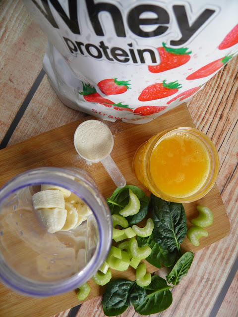Koktajl proteinowy z selerem, szpinakiem i pomarańczą