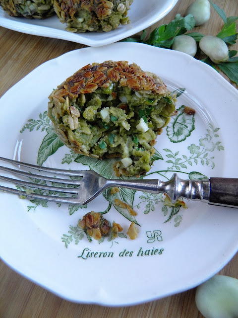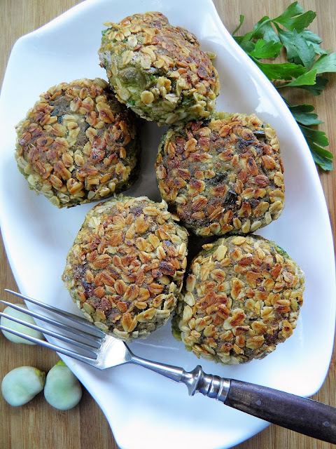 Dzisiejsze kotlety są na bazie bobu, a drugi podstawowy składnik to jajka. Panierowałam je w płatkach owsianych, doprawiłam ziołami. Są bardzo delikatne w smaku i mają cudny kolor :)
