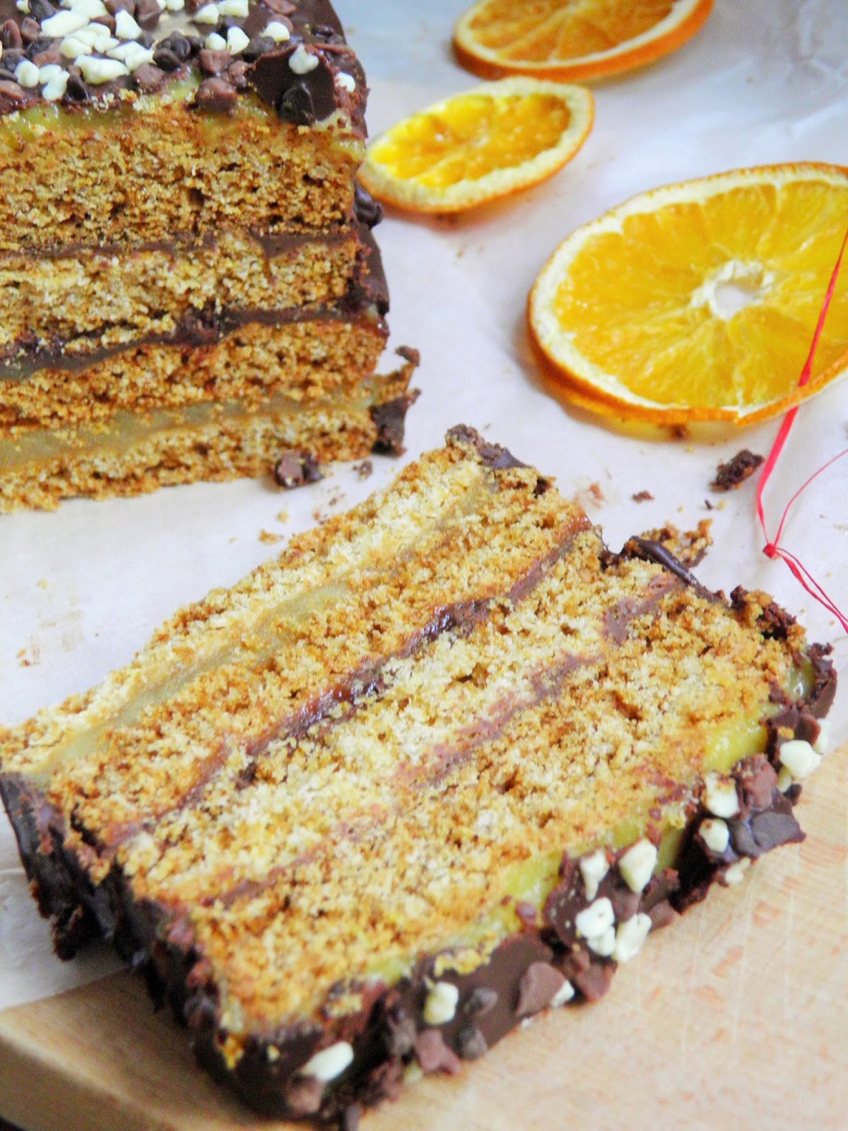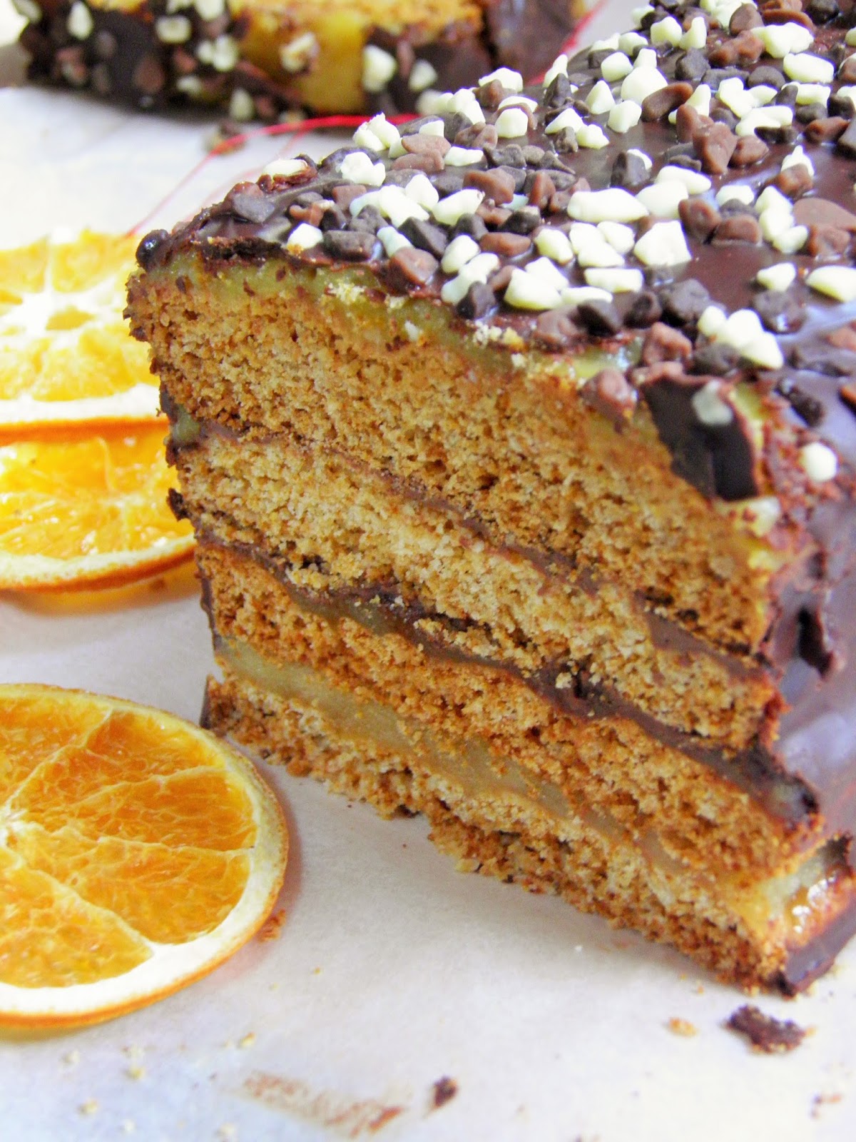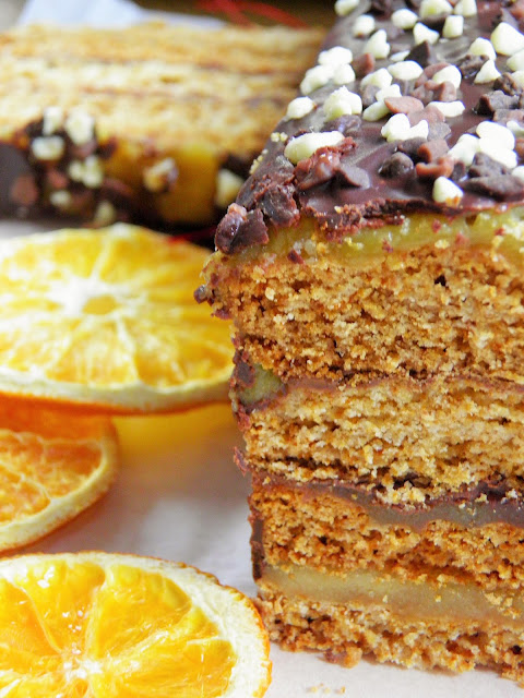 Królewski miodownik z marcepanem, czekoladą i polewą pomarańczową