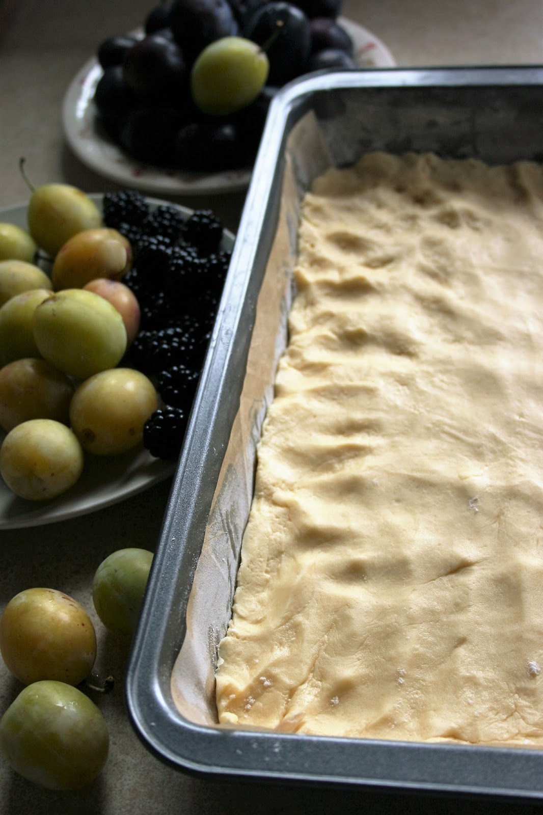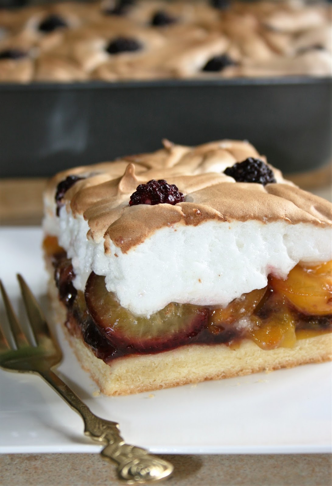 Kruchy placek z owocami i bezą