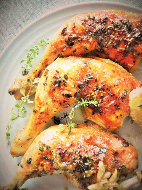 Rozmaryn to ostatnio moje ulubione zioło, dodaję je wszędzie, nawet do deserów - patrz Gruszki w winie z mascarpone. W tym wypadku pojawia się w towarzystwie czosnku i cytryny - czyli klasyka śródziemnomorska. Jest jeden z szybkich niedzielnych przepis...
