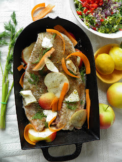 Leszcz pieczony z jabłkiem i marchewką