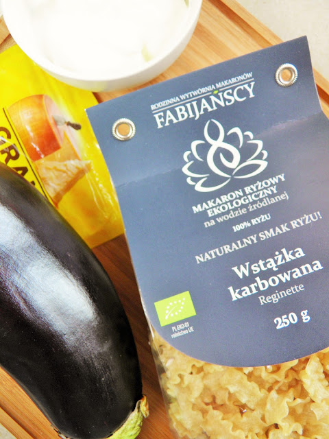 Makaron ryżowy z potrawką z bakłażana