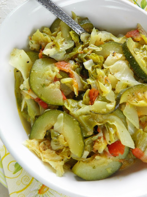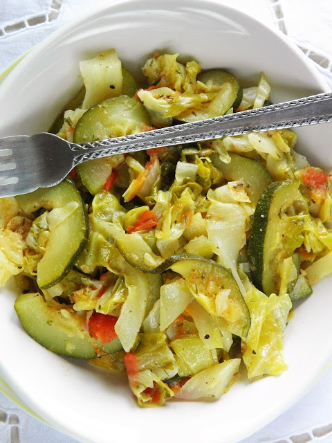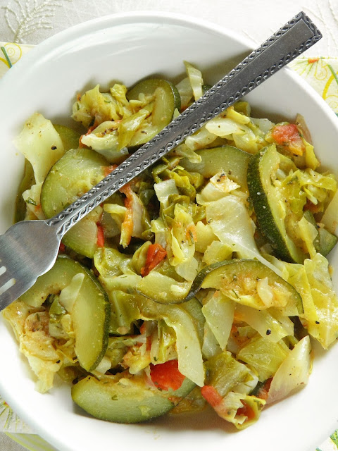Młoda kapusta z cukinią i pomidorami