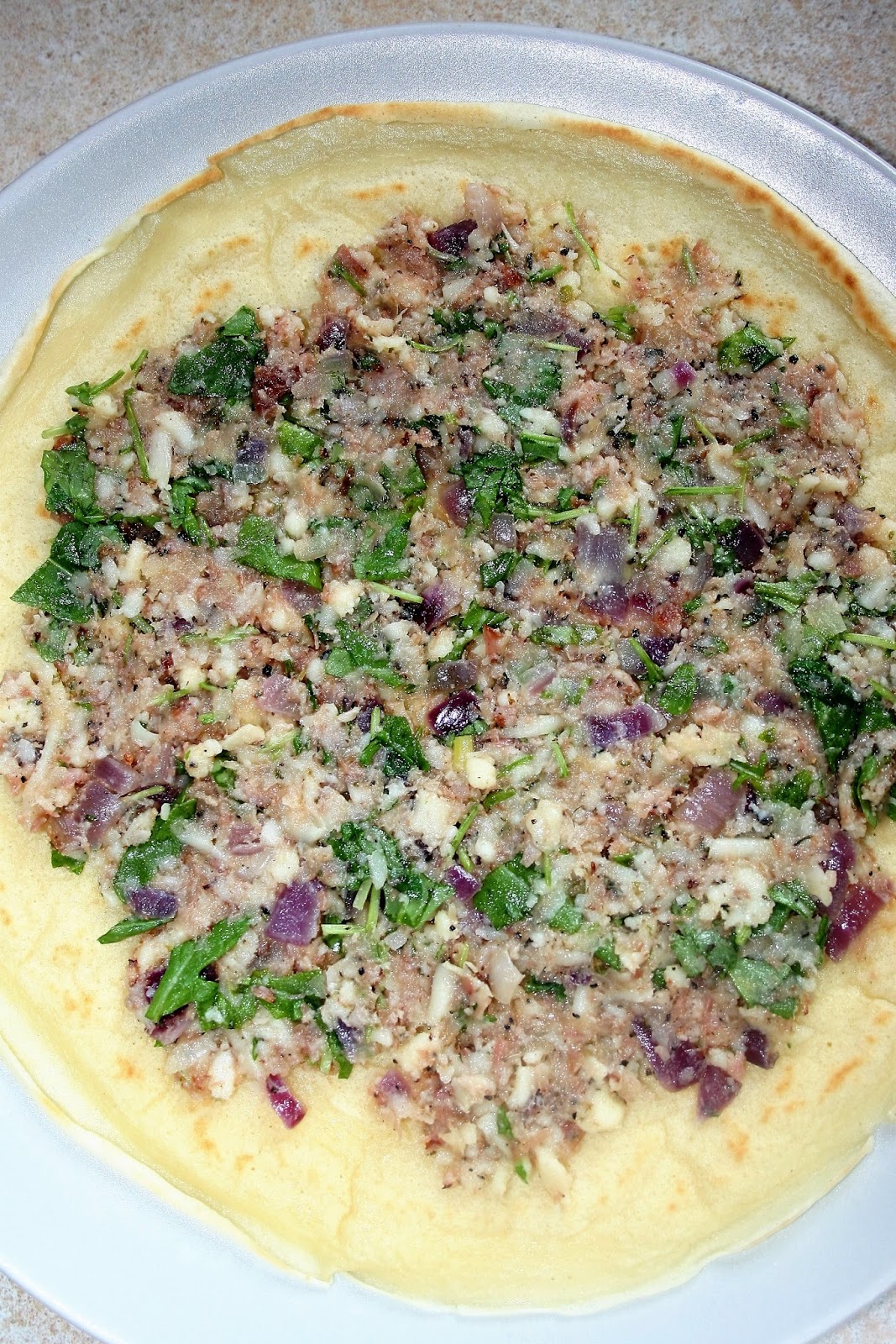: wszystkie składniki mieszam by powstało gładkie, lejące się ciasto. Odstawiam ciasto na czas przygotowywania farszu.