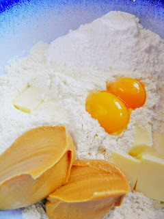 Składniki:-pierś z kurczaka-0,5 kg pieczarek-cebula-mały kawałek boczku-ser feta-jajko-kilka ząbków czosnku-sok z cytryny-natka pietruszki-pieprz, sól-masło-opakowanie makaronu typu muszelki (duży rozmiar:), mąka, bułka tarta, żółty sersos:-śmietana-ml...