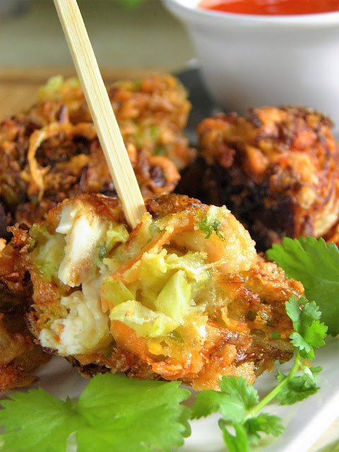 Pakora z sałaty lodowej z kurczakiem i orzeszkami ziemnymi