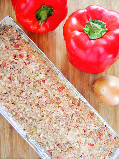 Keks mięsny z papryką i serem. Kolorowa pieczeń na kanapki i do obiadu.