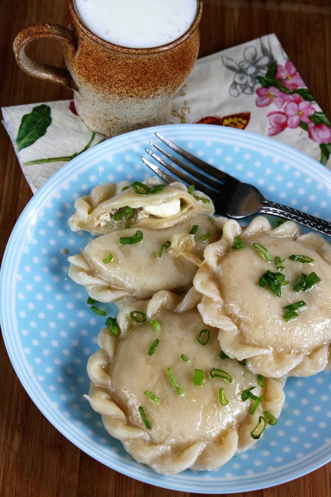Mimo, że pierogi nie są moim ulubionym obiektem do fotografowania zmotywowałam się by sfotografować te. Bo pomysł o którym piszę poniżej, choć banalny w swej prostocie, dla nas jest niedawnym odkryciem, które warto zapamiętać. Sos śmietanowy jest super...