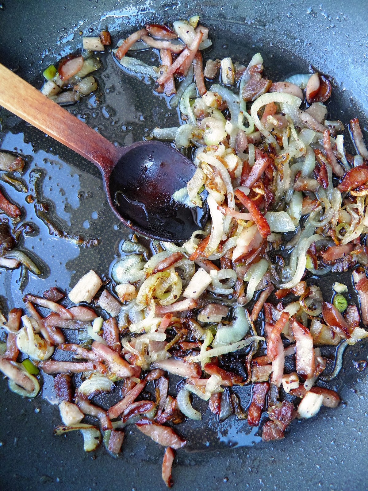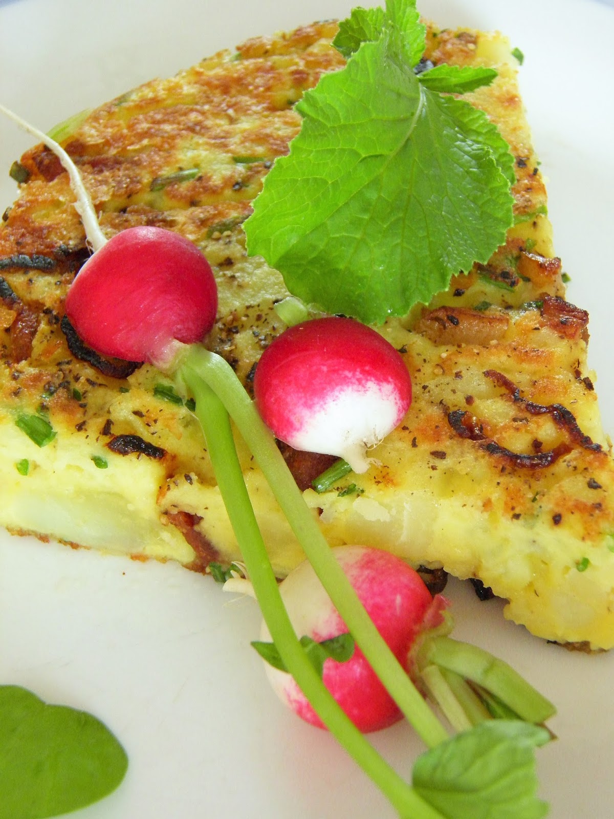 Z ziemniakami, tartym serem, boczkiem i kiełbaską, sycący i bardzo smaczny - taki ze wszystkiego i niczego jednocześnie - powstał dlatego, że czyścimy lodówkę przed urlopem. Można improwizować i zmieniać składniki, nadając mu każdorazowo trochę inny smak.