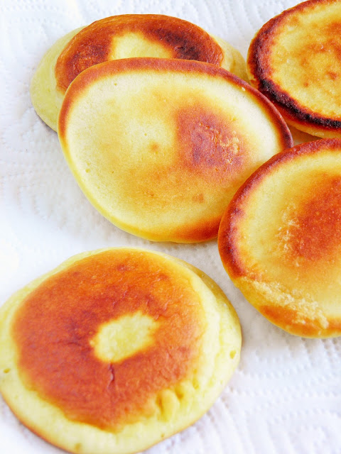 Na śniadanie, obiad czy kolację - będą wspaniałe ;) Ciasto nie zawiera żadnych spulchniaczy, w naturalny sposób rośnie podczas smażenia. Placuszki zjadłam z konfiturą o swojsko brzmiącej nazwie