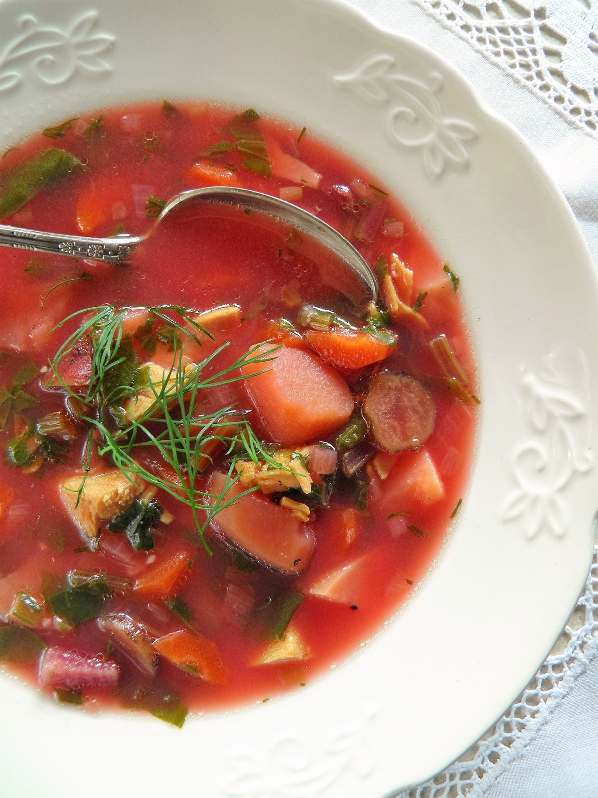 Nie ma dla mnie bardziej wiosenno-letniej zupy, niż botwinka. Moim zdaniem to kwintesencja świeżości i tego co najlepsze w warzywach. Ba, uwielbiam ją nawet na ten malwowy kolorek ;)